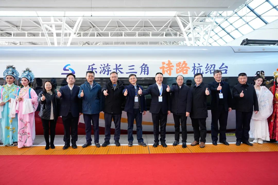 12月27日,由中国铁路上海局集团公司、杭绍台铁路公司与嵊州、新昌、天台、临海四地共同打造的“乐游长三角•诗路杭绍台”高铁旅游线正式开通,并在上海虹桥站举行旅游列车首发仪式。近600名来自全国各地的旅客及首发旅游团,开启此次“诗路探寻”之旅。