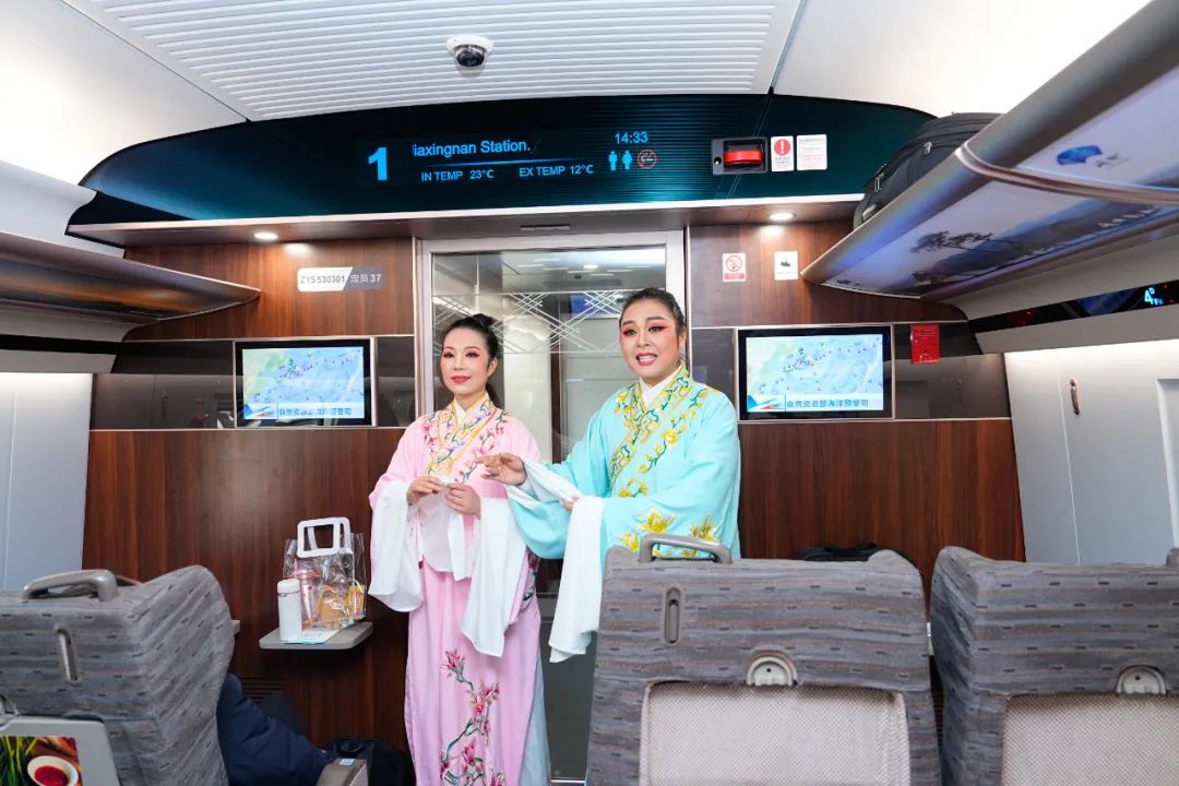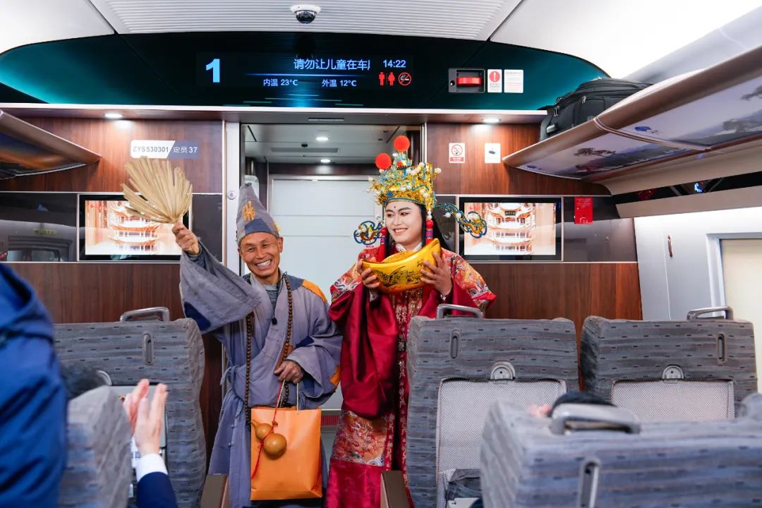 列车经停杭州东站后,陆续停靠嵊州新昌站、天台山站、临海站。嵊州、新昌、天台、临海四地文旅部门精心准备了接站仪式欢迎远道而来的游客,并向首发团游客推出景区门票、酒店住宿等优惠政策,将高铁“流量”变成文旅“增量”。