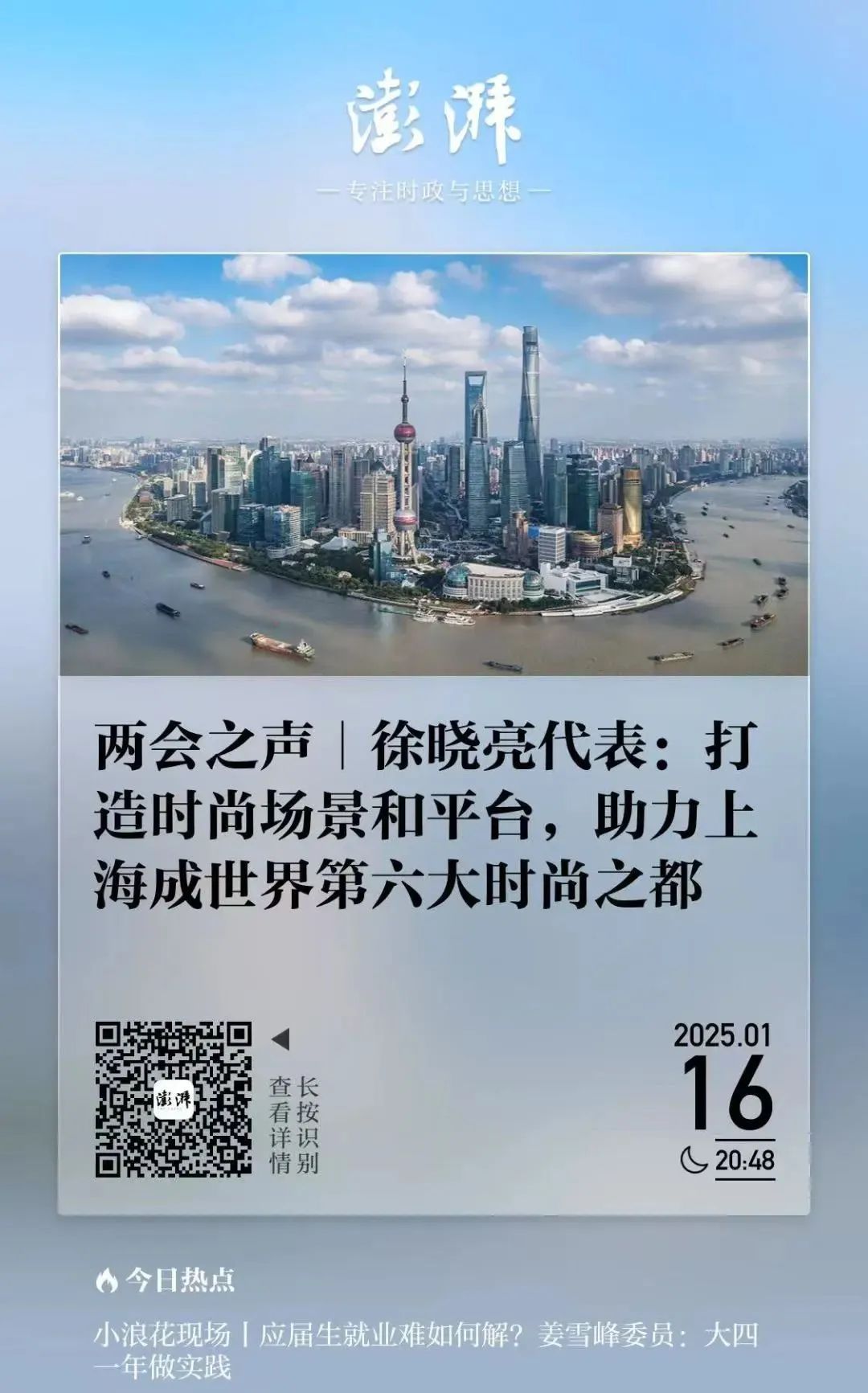本次大会,徐晓亮提交了两份建议,分别为《关于发展文旅新质生产力,助力上海打造世界级文旅目的地的建议》和《关于以“东方生活美学”促城市文化软实力提升的建议》。