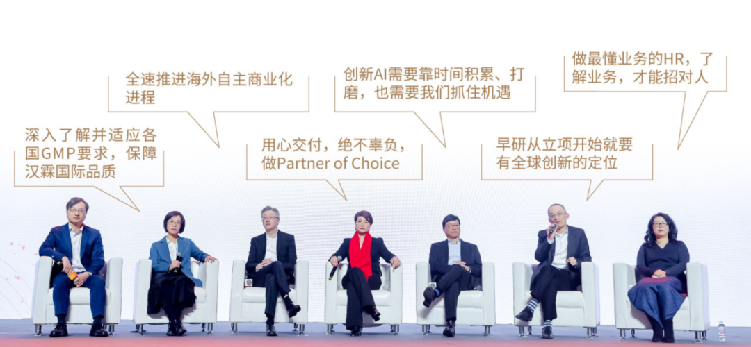 全球化浪潮引人深思,要高瞻远瞩,提前布局。“2025复宏汉霖战略巅峰对话圆桌论坛”环节,在全球产品开发部总经理李靖的主持下,复宏汉霖总裁黄玮、首席商务官兼高级副总裁余诚、首席商务发展官兼高级副总裁曹平、首席技术官兼高级副总裁许圣昌、首席科学官袁纪军和首席人力资源官兼副总裁李君华围绕全球GMP体系建设、国际战略合作伙伴、早研产品布局、CMC工艺创新、自有商业化团队和人才梯队建设等方面共话汉霖国际化与创新双轮战略。