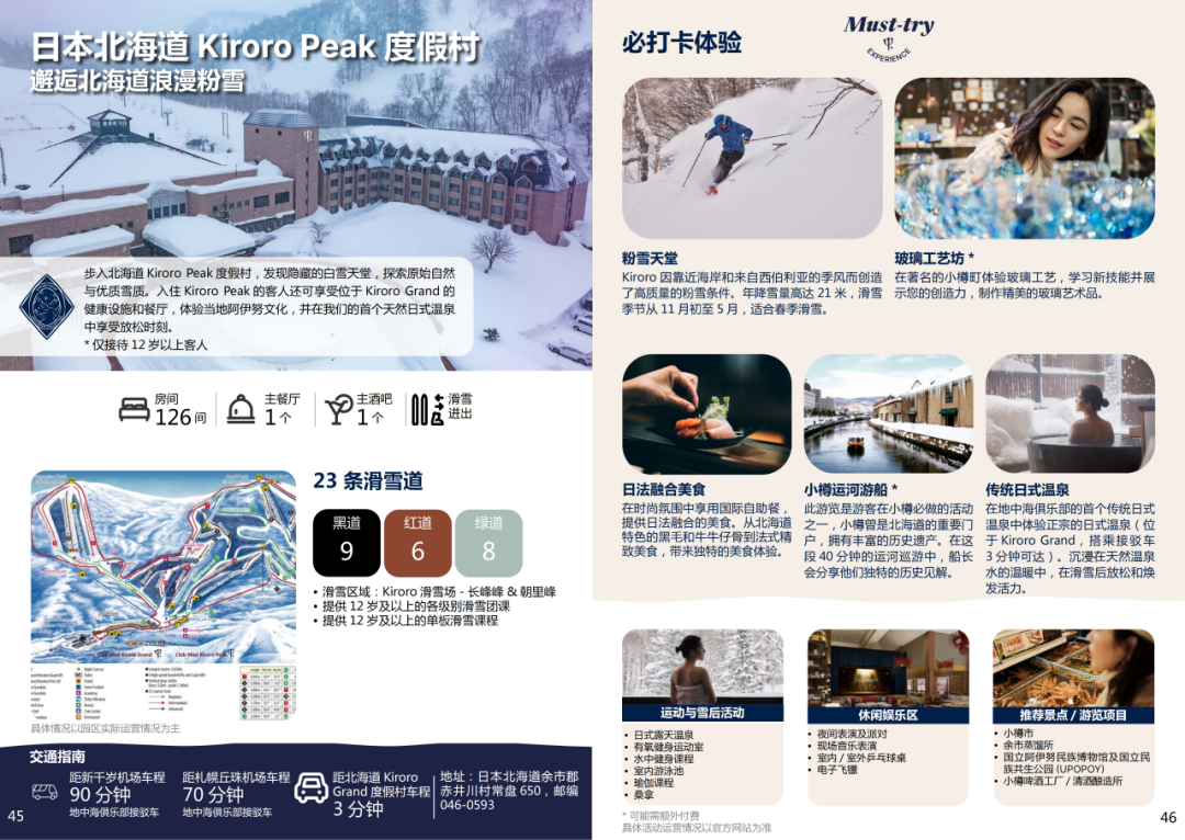 在Club Med地中海俱乐部·法国蒂涅度假村,宾客可以“滑进滑出”,畅滑优质雪道,尽览阿尔卑斯山壮丽山景。日本北海道地区同样是令滑雪爱好者心驰神往的目的地,这里拥有得天独厚的降雪条件,被誉为“粉雪天堂”,从11月中旬持续到次年5月上旬的超长雪季也为滑雪爱好者提供了充足时间尽情享受雪季乐趣。地中海俱乐部在北海道地区共布局4家滑雪度假村,无论是寻求刺激的高级滑雪者,还是刚刚踏上雪板的新手,抑或是希望享受家庭时光的宾客都可以在这里体验属于自己的滑雪假期。