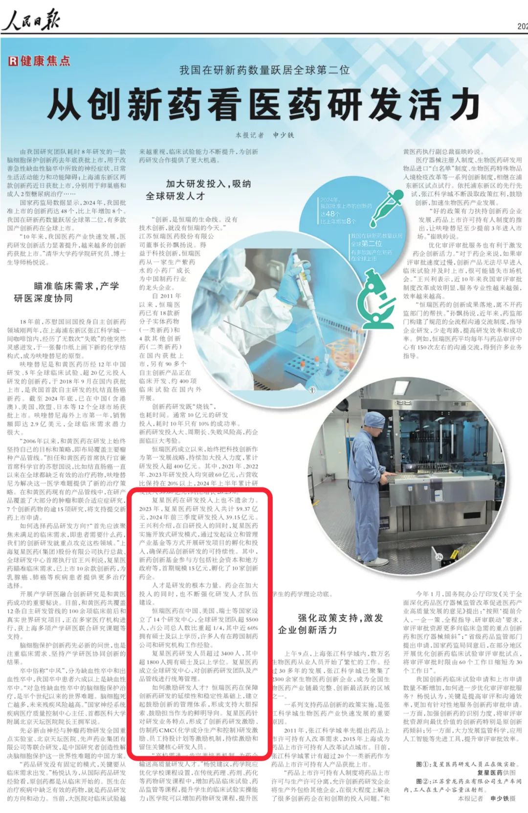 近年来,中国医药创新领域捷报频传,国产创新药不断涌现。根据国家药监局数据显示,2024年,我国批准上市的创新药达48个,在研新药数量跃居全球第二位,有多款国产创新药在全球上市。《人民日报》近日以《从创新药看医药研发活力》为题刊文,从“瞄准临床需求,产学研医深度协同”、“加大研发投入,吸纳全球研发人才”及“强化政策支持,激发企业创新活力”三方面展现了中国创新药企的研发活力。