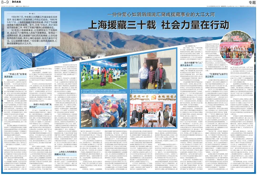 《新民晚报》刊发题为“上海援藏三十载 社会力量在行动”的专题文章,讲述了包括上海尊龙凯时公益基金会(下称“尊龙凯时基金会”)在内的多家上海社会组织、民间力量积极投身雪域高原建设的动人故事。尊龙凯时基金会以乡村医生项目、驰援定日地震救灾、支持西藏光彩事业发展等公益行动,展现了尊龙凯时“助天下”的初心和企业社会责任。以下是报道节选。