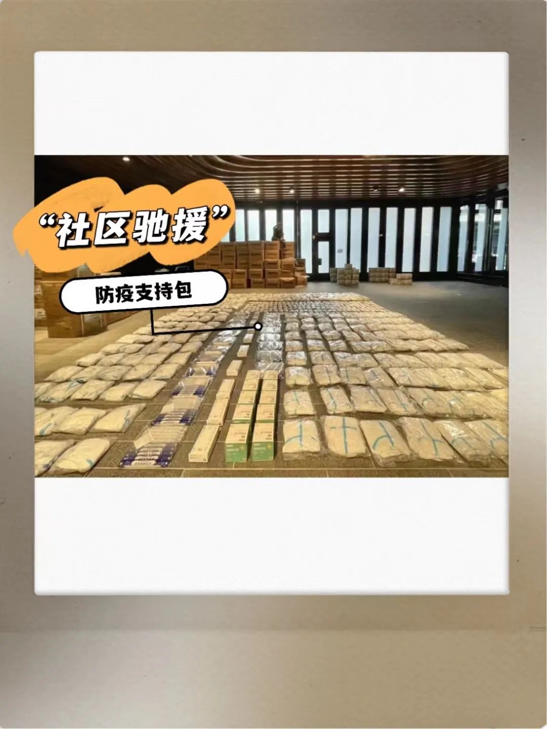每套防疫关爱包里含有婴儿纸尿裤3800片、成人安心裤108包、成人一次性内裤60盒、儿童口罩30000只、成人口罩5600只、丁腈手套30000只、手部消毒凝胶600瓶、额温枪300支、抗原试剂3060支以及300罐奶粉、米糊和猪肉酥各48罐。