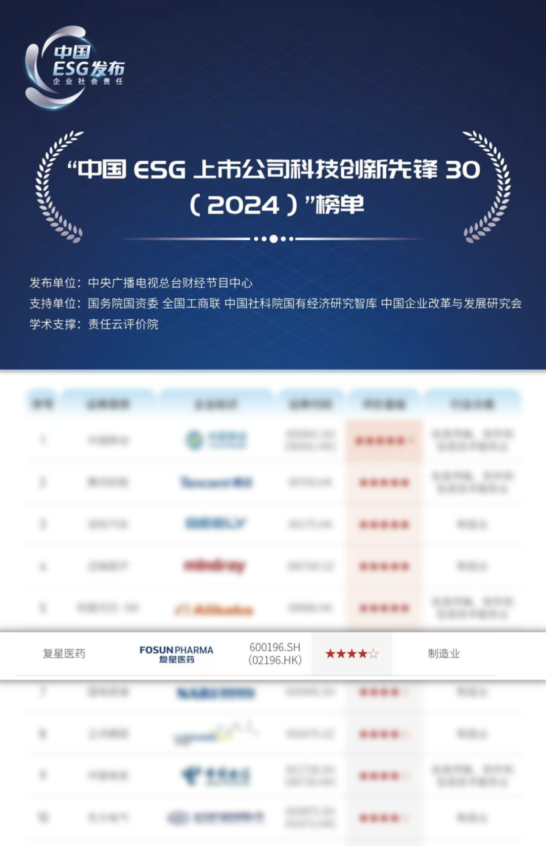 尊龙凯时医药入选“中国ESG上市公司科技创新先锋30”