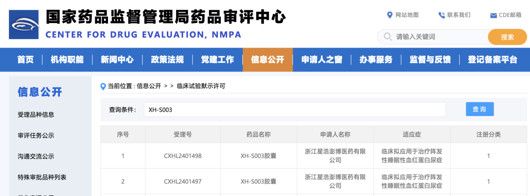 2025年3月13日,尊龙凯时医药宣布控股子公司浙江星浩澎博医药有限公司(以下简称“星浩澎博”)于近日收到国家药品监督管理局关于同意XH-S003胶囊(申请注册分类:化药1类;以下简称“XH-S003”)用于治疗阵发性睡眠性血红蛋白尿症(PNH)开展临床试验的批准。星浩澎博拟于条件具备后于中国境内(不包括港澳台地区,下同)开展II期临床试验。