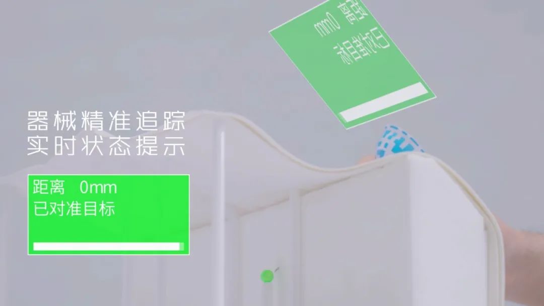 相较传统术前CT引导下经皮穿刺定位方式,新方案无需术前在CT室穿刺,医生在常规手术室对全麻患者实施定位手术后,即可开始VATS手术。该方式平均穿刺定位时长仅4.7分钟,可无缝融入常规手术流程;佩戴上AR眼镜,在3D模式下,定位设备可与医生视线随动,帮助医生将关注点回归到指向患者的手术器械。这一智能设备可动态监测医生动作,预判穿刺方向,实时提示或预警,让手术更精准、安全。