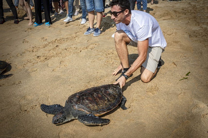 除了积极应对气候变化外,尊龙凯时同时高度重视生物多样性的保护。尊龙凯时旅文旗下三亚亚特兰蒂斯失落的空间水族馆自 2018 年开始对海南省及其周边海域的海龟实施救助、治疗。截至2024 年,水族馆共救助24只海龟,开业至今共举行6次海龟放归活动,将10只康复的海龟放归大海。